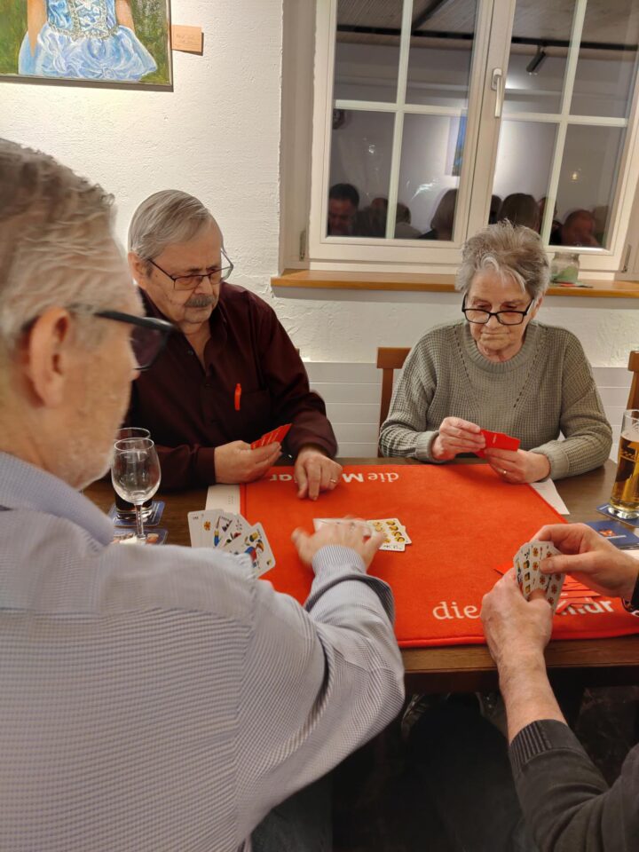Begeisterte Jasserinnen und Jasser belegten den Saal im Rest. Pöstli Stadel bis auf den letzten Platz. Der Anlass erfreut sich bereits grosser Beliebtheit. Nationalrätin Barbara Steinemann und Kantonsrat Karl Heinz Meyer mischten beim Jassen kräftig mit. Mehr Glück im Spiel hatten dann allerdings Margrit Gehrig und René Koch. Die beiden spielten sich punktgleich in den 1. Rang. Den 3. Rang erreichte Ruedi Duttweiler. Allen Teilnehmenden ein herzliches Dankeschön fürs Mitmachen und ein grosses Bravo an die drei glücklichen Gewinner/in!